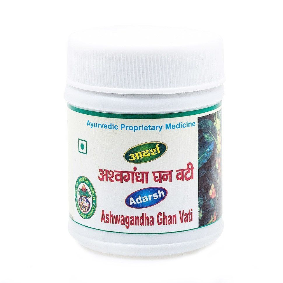 Ashwagandha Ghan Vati Adarsh (Ашвагандха Гхан Вати Адарш) - аюрведическое натуральное средство, используемое для укрепления иммунитета, лечения импотенции и ракаОсновные свойства Ашвагандха Гхан Вати Адарш: