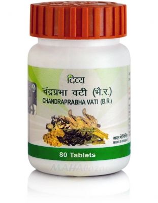 Коричник камфорный (Cinnamomum camphora), Аир болотный (Acorus calamus), Муста (Cyperus rotundus), Бхунимба/Андрографис метельчатый (Andrographis paniculata), Гудучи (Tinospora cordifolia), Кедр гималайский (Cedrus deodara), Золотой турмерик (Curcuma longa), Ативиша (Aconitum heterophyllum), Барбарис индийский (Berberis aristata), Пиппали (Piper longum), Читрак (Plumbago zeylanica), Кориандр (Coriandrum sativum), Харитаки (Terminalia chebula), Бибхитаки (Terminalia bellirica), Амла (Emblica officinalis), Перец чаба (Piper chaba), Эмбелия кислая (Embelia ribes), Перец чаба (плоды) (Piper chaba), Имбирь (Zingiber officinalis), Черный перец (Piper nigrum), Пиппали (плод) (Piper longum), Макшик Бхасма (CuFeS2), Явам (Hordeum vulgare), Сварджика кшара (Swarjika kshara), Розовая соль (Saindhava lavana), Черная соль (Black salt), Соль Аммония (Vid salt), Турпет (Operculina turpethum), Данти (Baliospermum montanum), Патра (Cinnamomum tamala), Коричник цейлонский (Cinnamomum zeylanicum), Кардамон (Elettaria cardamomum), Бамбук тростниковый (Bambusa arundinaceae), Железо очищеное (Lauh bhasma), Сахар (Sugar), Шиладжит (Asphaltum), Гуггул (Commiphora mukul)Показания к применению Chandraprabha Vati Patanjali (Чандрапрабха Вати Патанджали)